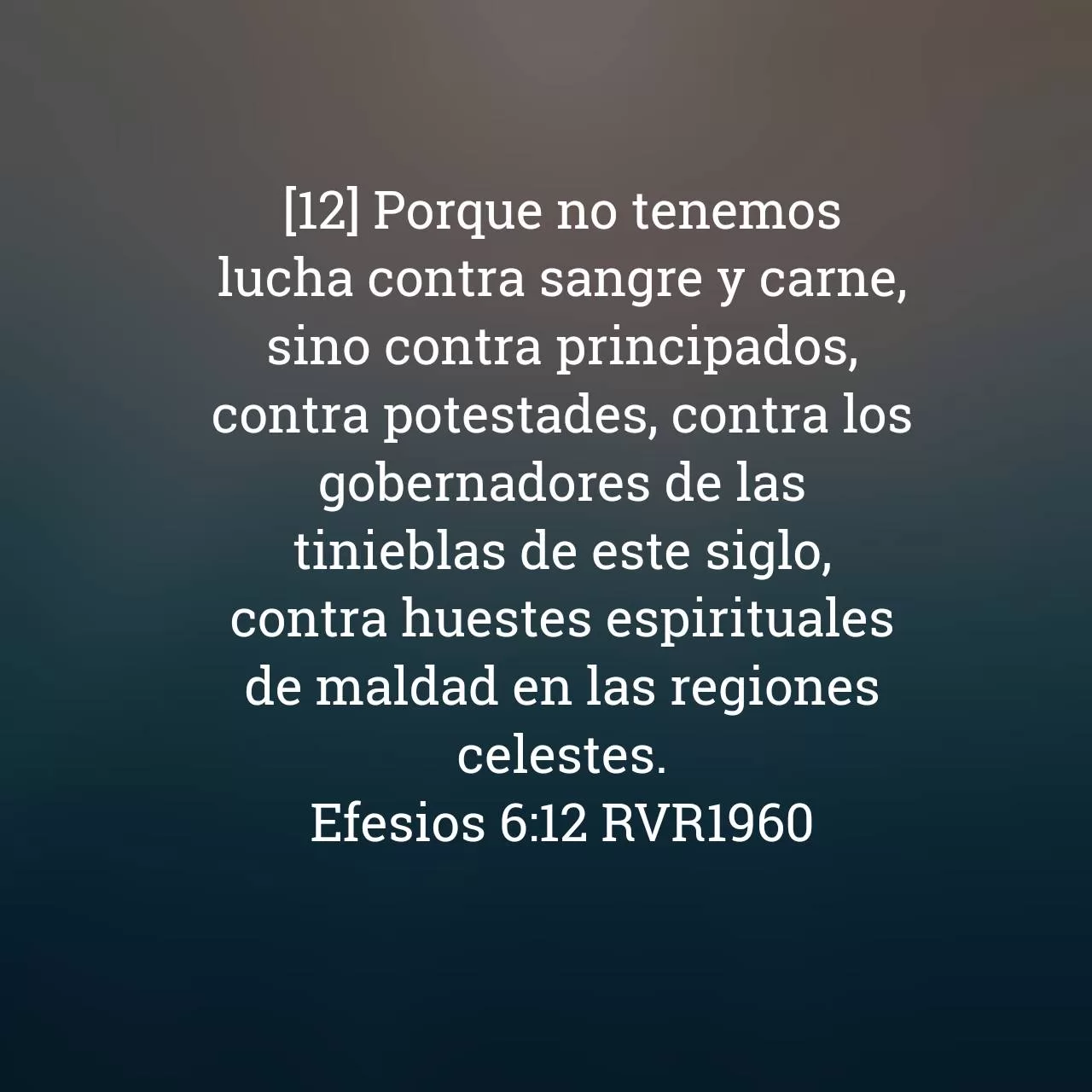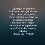 Efesios 6:12 RVR1960 [12] Porque no tenemos lucha contra sangre y carne, sino contra principados, contra potestades, contra los gobernadores de las tinieblas de este siglo, contra huestes espirituales de maldad en las regiones celestes.