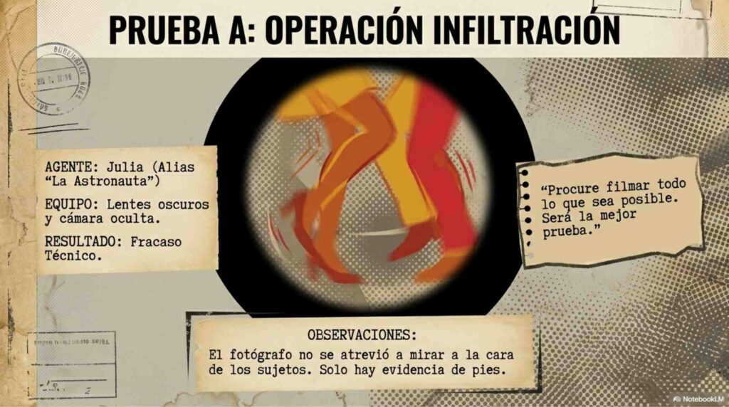 3. Vigilancia y Espionaje: El empleo de cámaras ocultas y “espías” (como inicialmente Julia) para obtener pruebas visuales de la supuesta conducta inmoral.