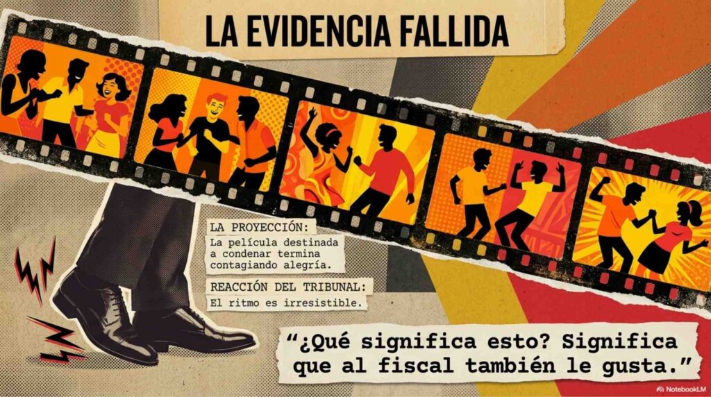 La escena del tribunal es una pieza maestra de ironía narrativa. La fiscalía intenta utilizar una filmación clandestina como prueba incriminatoria definitiva del “espectáculo denigrante” del Twist. No obstante, se produce un giro sistémico: la película revela que la propia fiscal, Julia, es la estrella del baile, demostrando un talento que contradice su discurso inquisidor. Esta evidencia, en lugar de condenar, legitima el Twist al mostrar su carácter “contagioso” e irresistible, incluso para sus perseguidores.