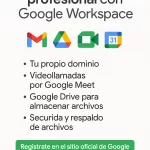 📧 Tu propio correo tipo contacto@tunegocio.com 📁 Espacio en la nube con Google Drive 📹 Videollamadas por Google Meet (¡puedes grabarlas!) 📑 Documentos y presentaciones desde cualquier lugar 🛡️ Seguridad para tu información y tus clientes 📆 Calendar para tus citas y eventos importantes